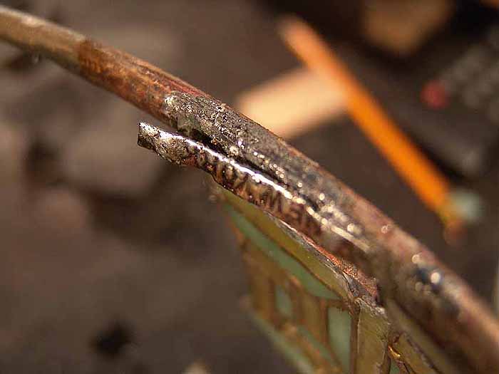 Before doing this, we have to remove the Tiffany-Studios signature tags. We will resolder them later