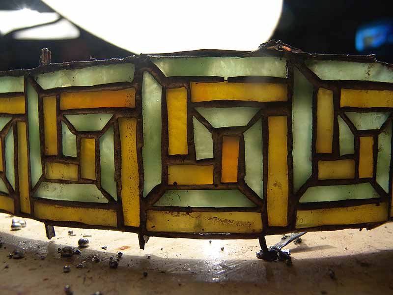 Some of the glass pieces were broken. You can see the remains in the rests of the old solder lines.