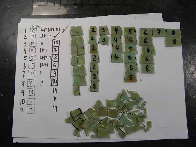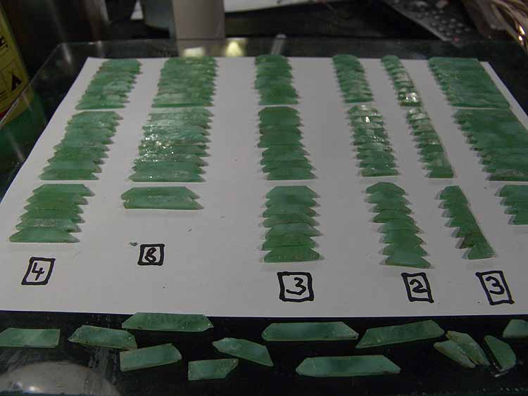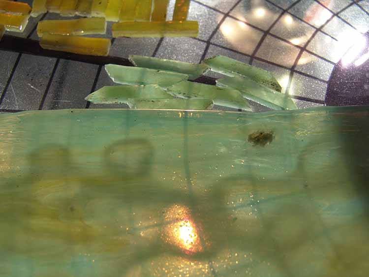 This is the saved glass original, broken pieces, cut down to smaller sizes.