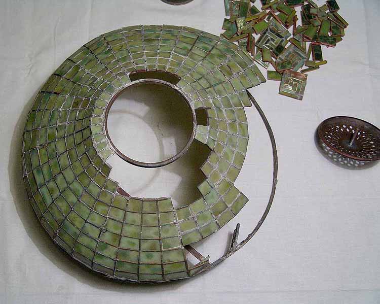 This antique lamp shade had been stored since a hobbyist`s unsuccessful try to repair 20 years ago.